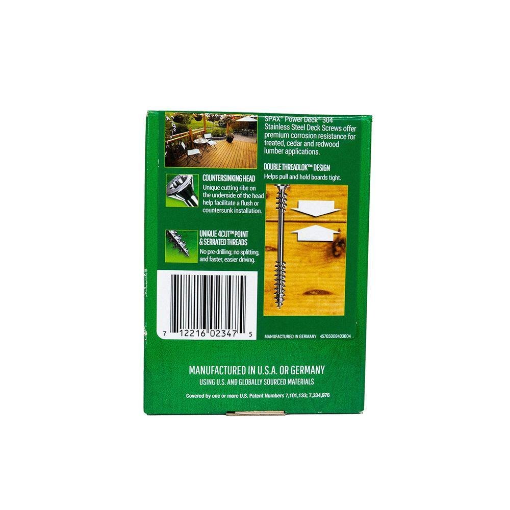 The SPAX Factor – For the craftsman that concentrates on the details, We Work for You. For the Pro that puts qualify first, we help you create stronger connections, enhance performance and improve results when your reputation is on the line. Stainless Steel screws offer the ultimate corrosion resistance and aesthetics in wood decking and railing applications. Made of 300 series stainless steel, these screws are ideal for exterior applications in most environments. SPAX is your trusted partner for your fastening needs. Do it Once, Do it Right with SPAX.
