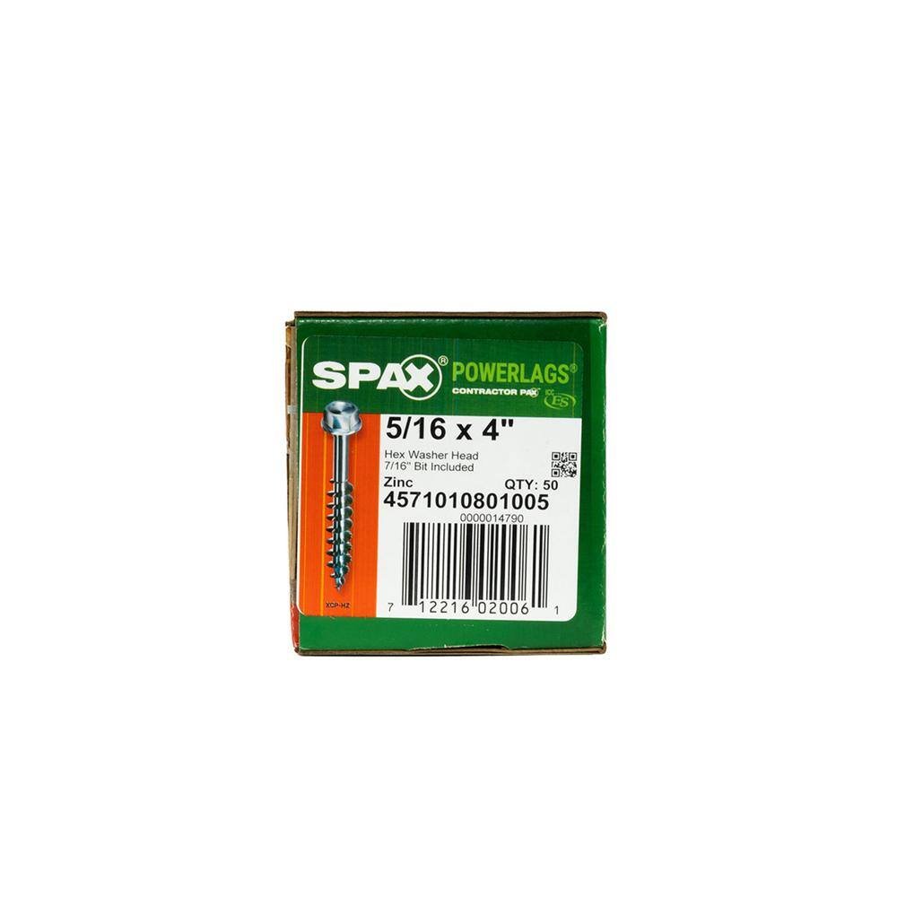 - SPAX 5/16-in. Hex PowerLags require a 7/16-in. Hex Driver