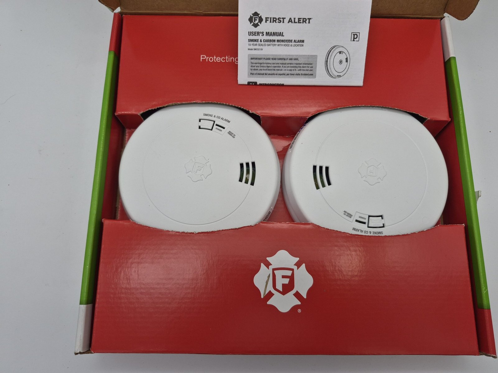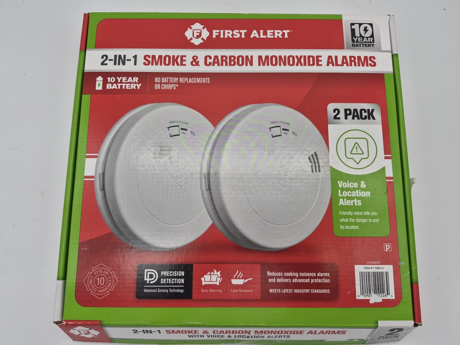 Protect your home with this First Alert 2-Pack of 2-in-1 Smoke and Carbon Monoxide Alarms. This is the SMCO210V model, which features a 10-year sealed lithium battery—meaning no battery changes or low-battery chirps for a decade.