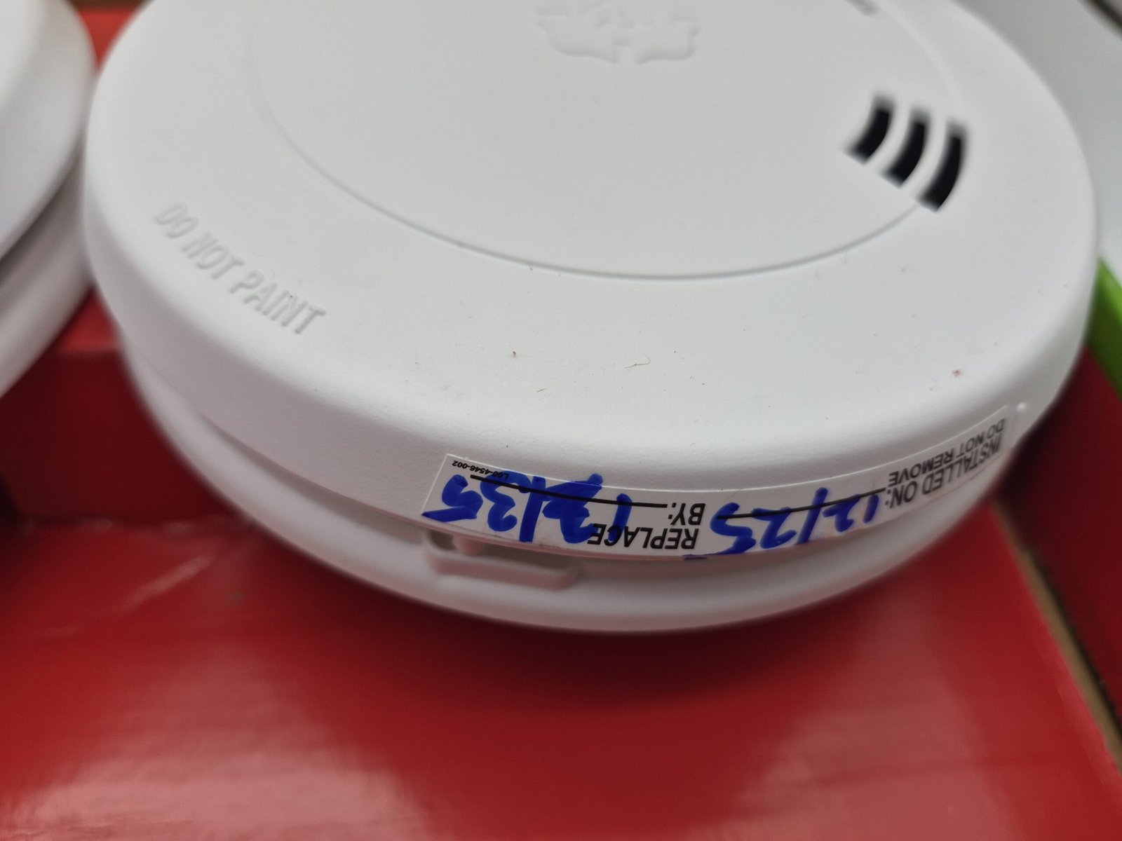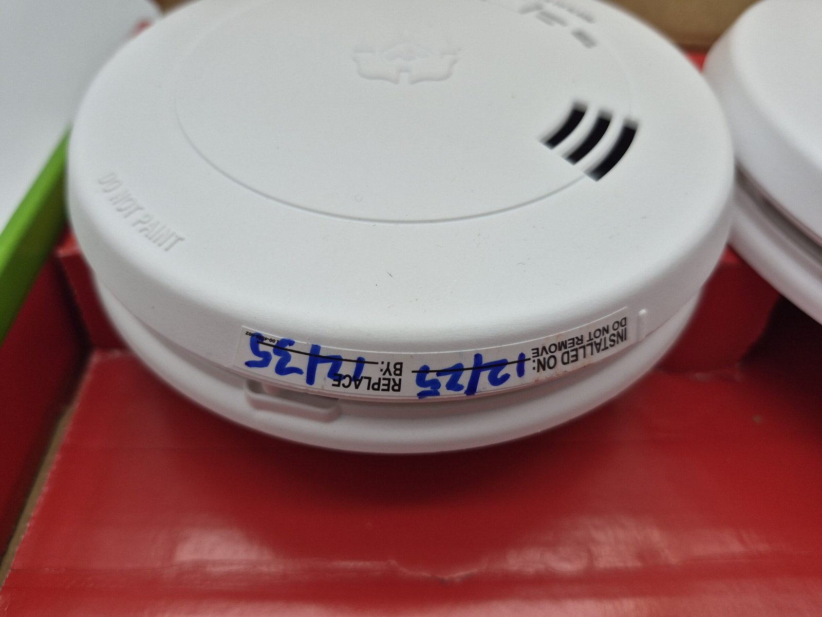 Open box. The units have handwritten installation dates on the side/back (see photos), but they were NEVER actually installed or activated. The yellow activation tabs are still intact and must be removed to power the units. Full 10-year battery life remains.