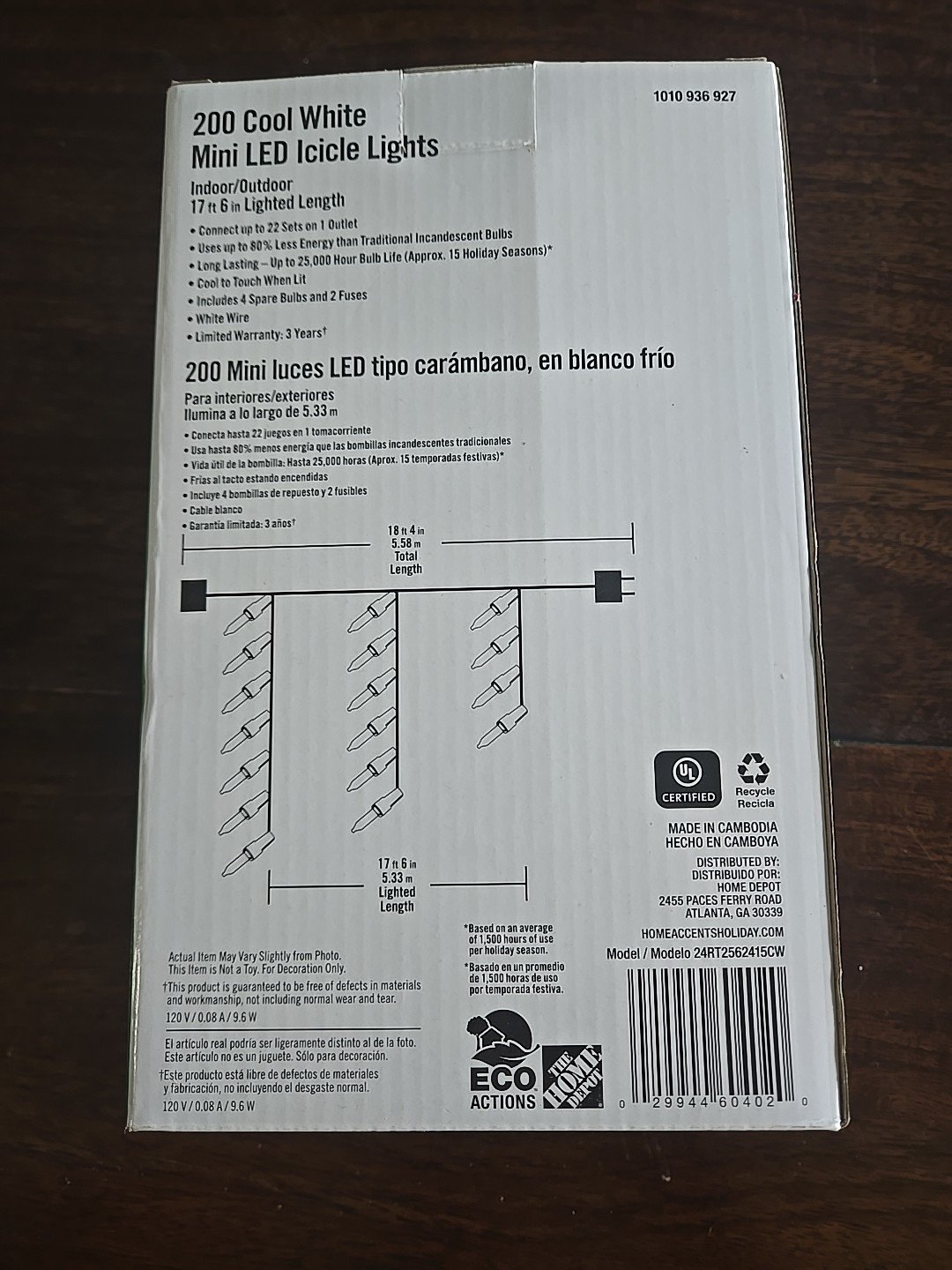 The HOME ACCENT HOLIDAY 200 Cool White Mini LED Icicle Lights are a festive addition to any holiday décor. With a cool white color and a string light design, these lights are perfect for creating a warm and inviting atmosphere during the holiday season. The 17.5 ft length allows for versatile placement options, while the mini LED technology ensures a bright and energy-efficient lighting experience. Made by The Home Depot, these holiday-themed string lights are a reliable and stylish choice for enhancing your home’s seasonal cheer.