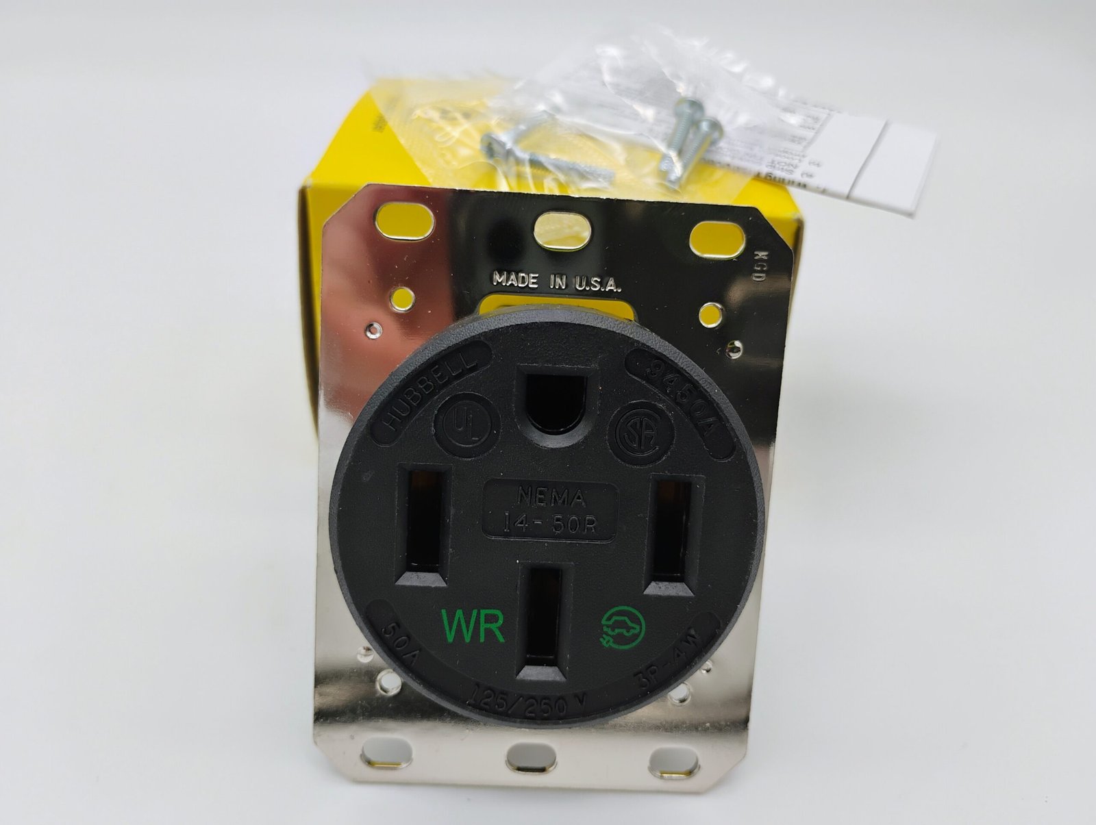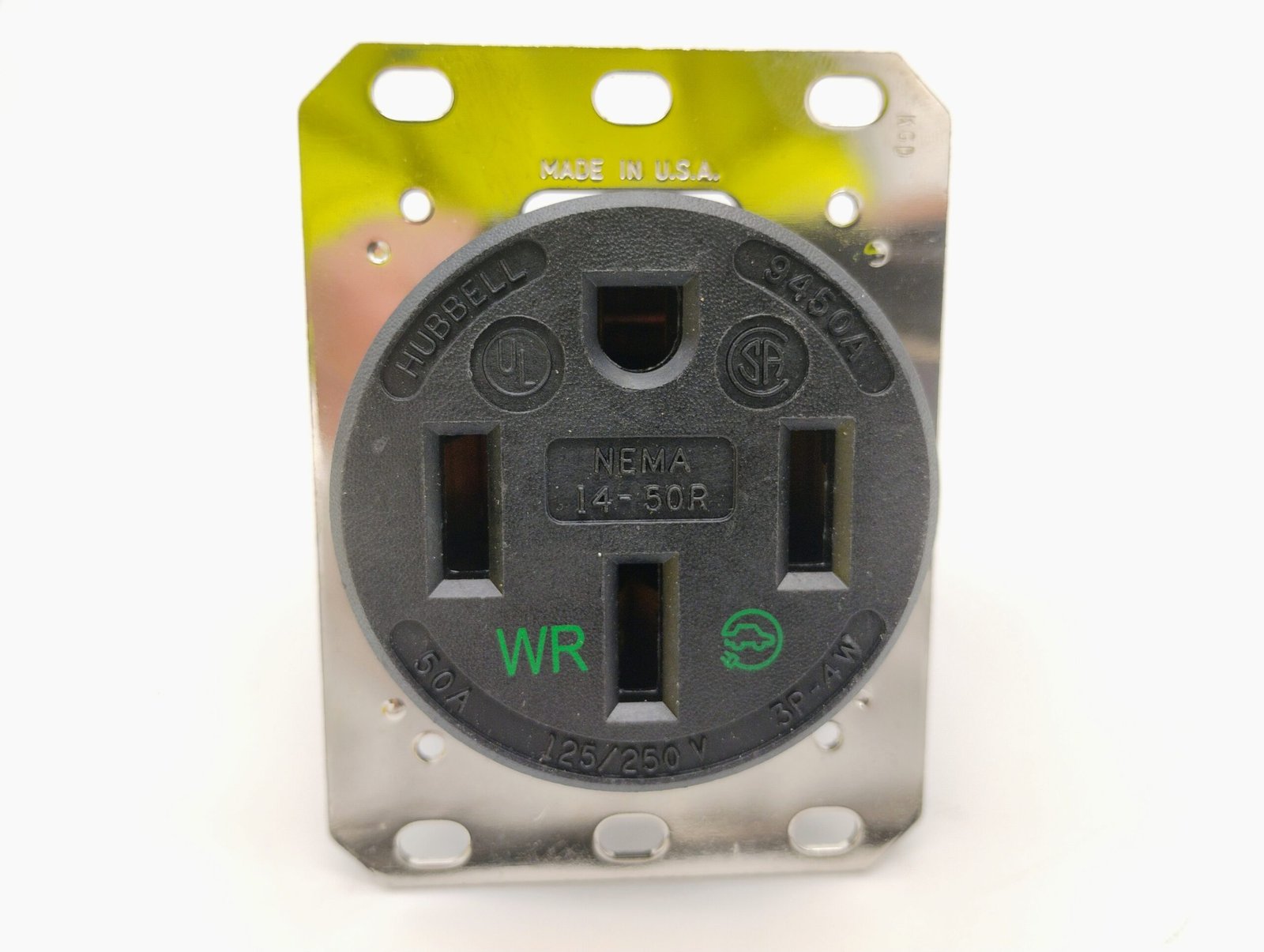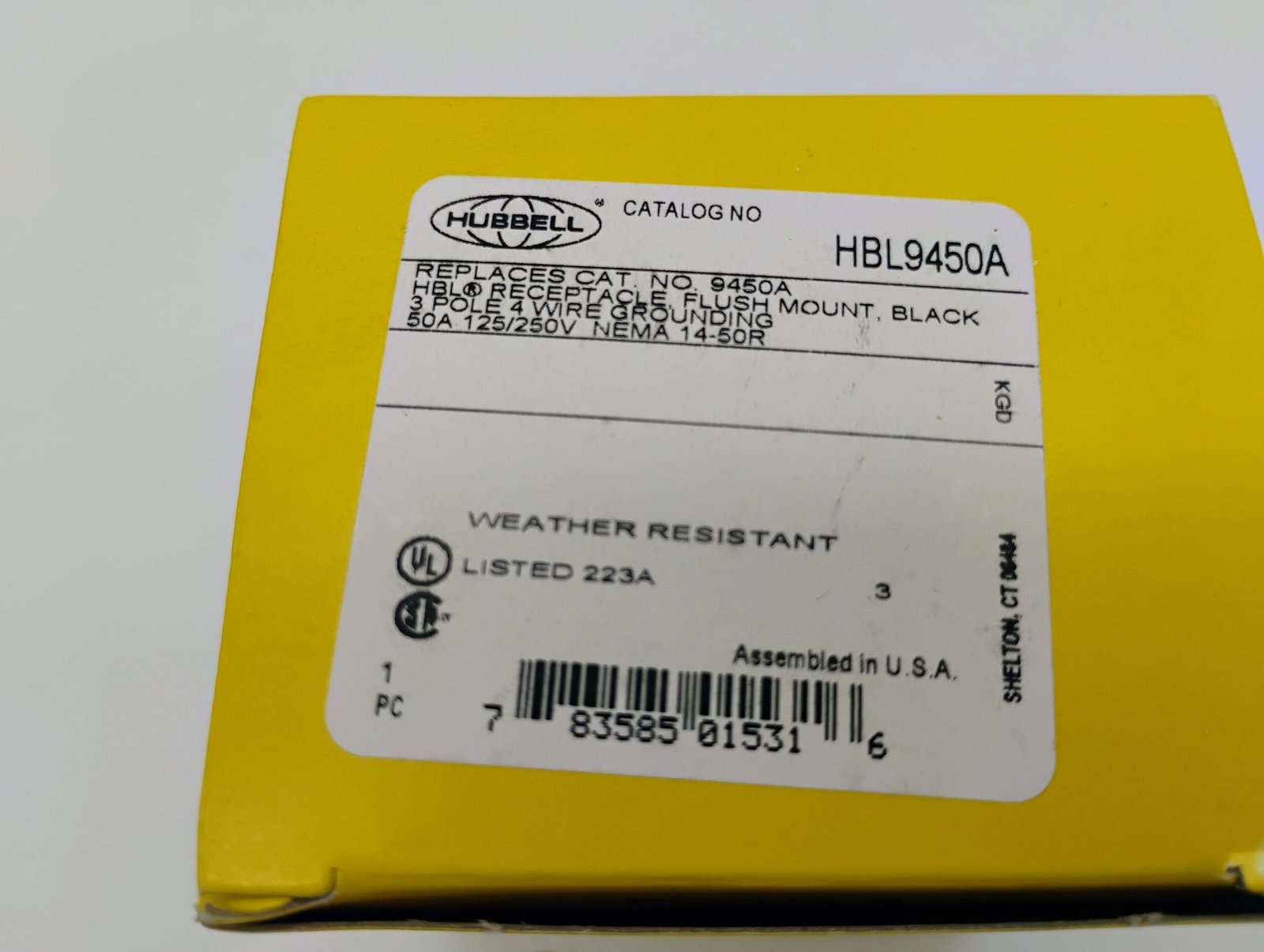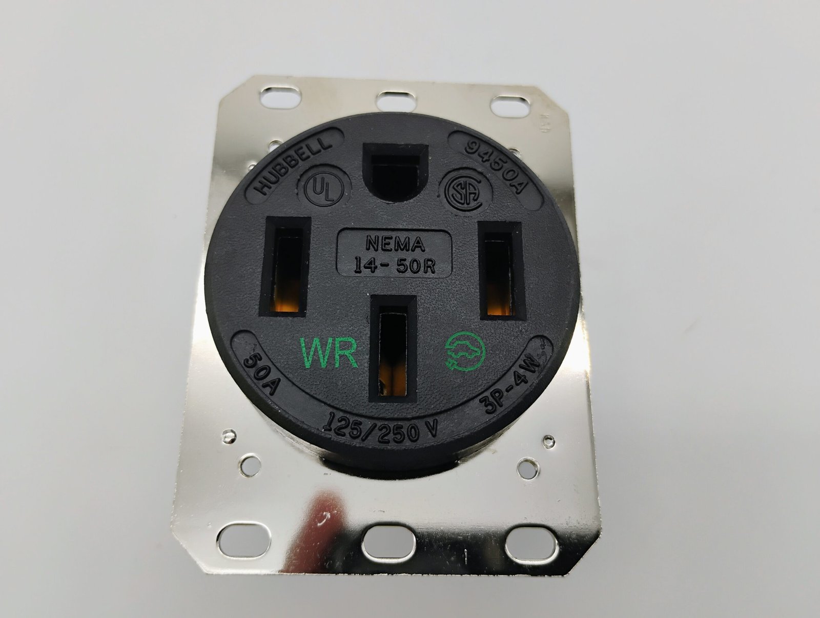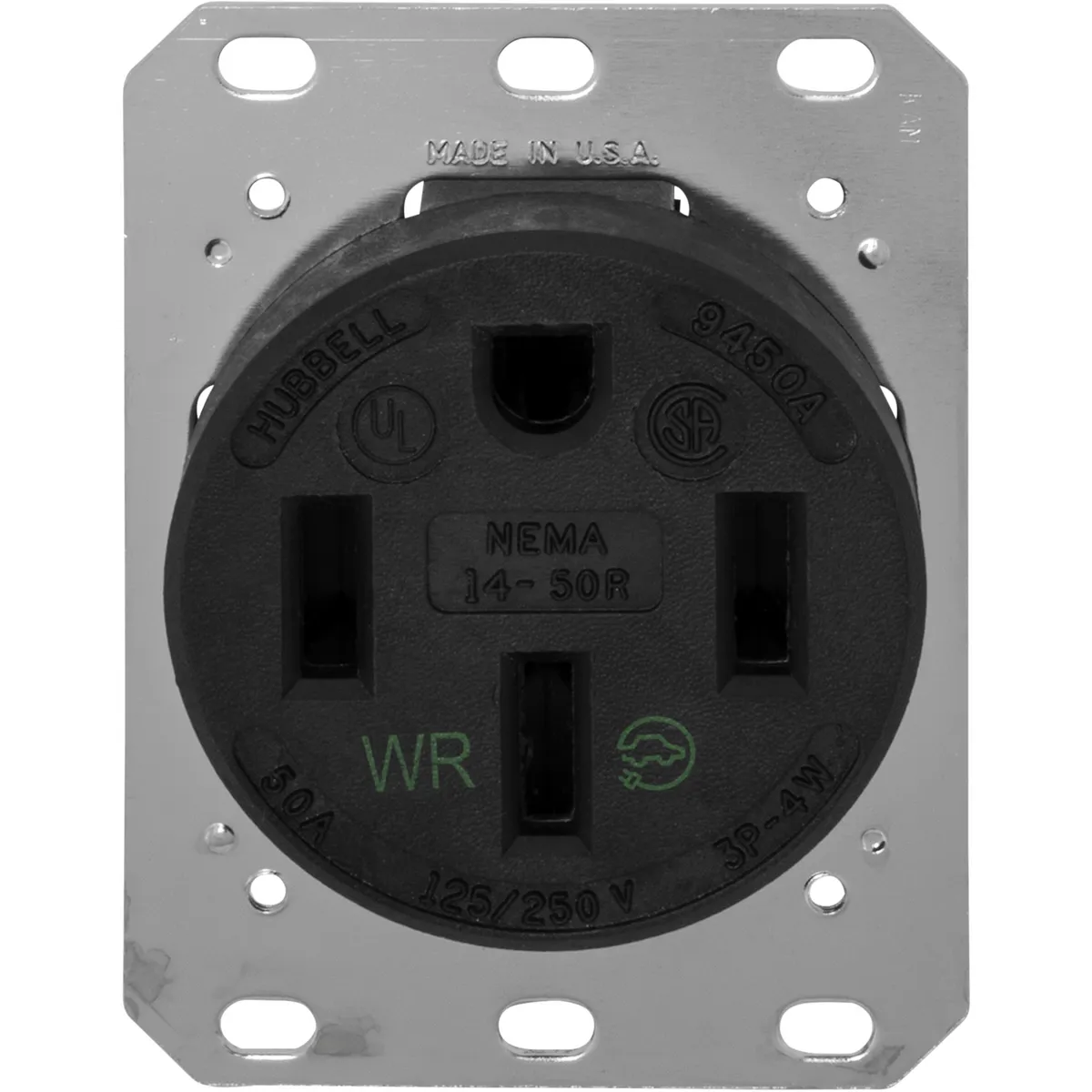 Hubbell HBL9450A 50A 125/250V 3-Pole 4-Wire NEMA 14-50R Receptacle – Black