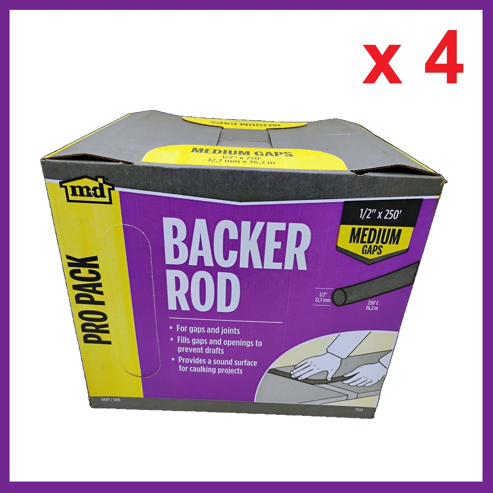 Lot of 4 M-D Building Products Versatile Gray Foam Backer Rod Set 1/2in x 250ft