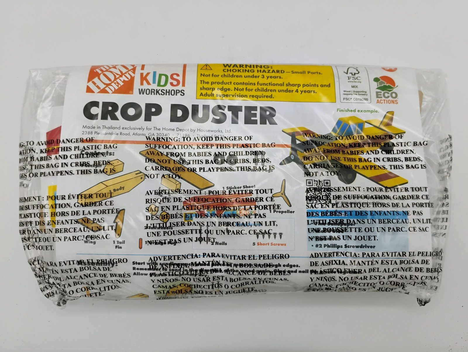 NEW! Home Depot CROP DUSTER Airplane Kids Workshop Kit w/ Pin Sept 2025.