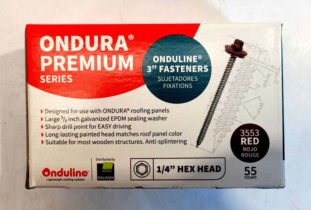 Ondura Premium 3″ Roofing Fasteners Red 1/4″ Hex Head Lot of 8.5 (476 Count)